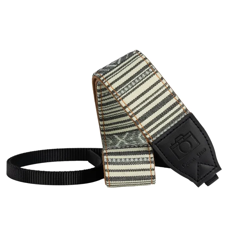 The strap is made from cotton and soft leather for durability and comfort of use. It is compatible with all camera brands and is available in a range of colors to personalize your camera to your liking.