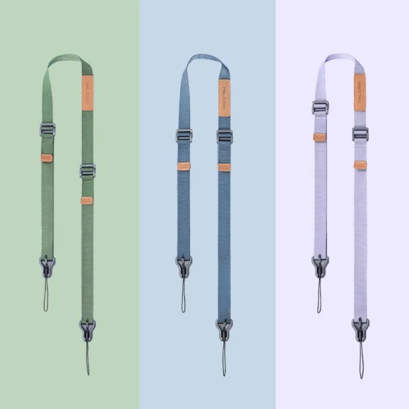 The camera strap length is adjustable in two directions, from 790 to 1400 mm. Adjust the belt length easily and quickly with one hand thanks to the suede pull tabs.