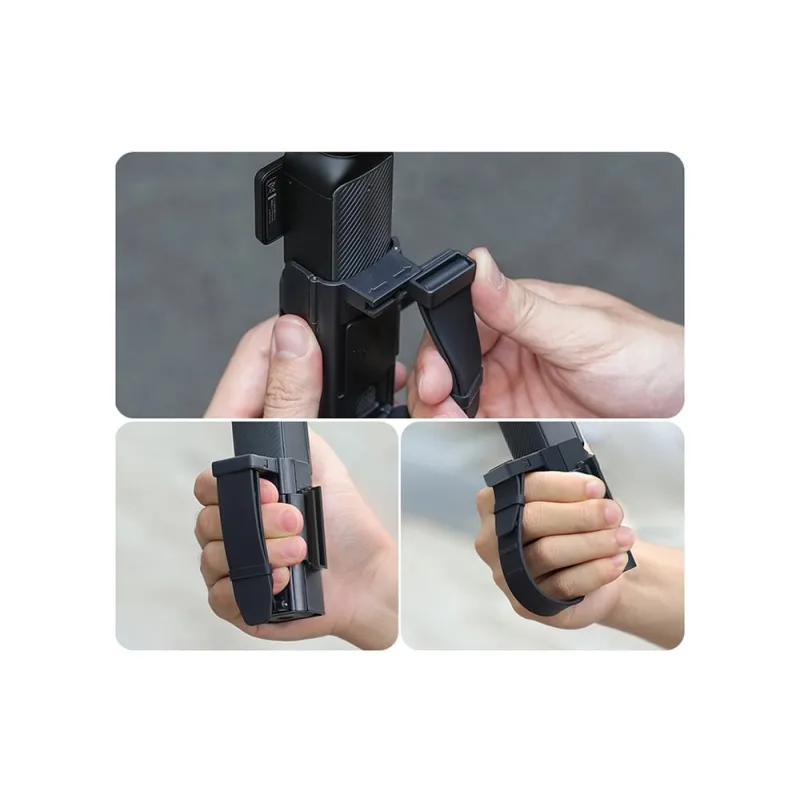Riešo juosta veikia kaip patogus prailginimo rankena, kuri pagerina Pocket 3 laikymo ergonomiką. Kasdieniniame režime ji veikia kaip saugi riešo juosta, o filmavimo metu leidžia rankai pailsėti tarp kadrų.