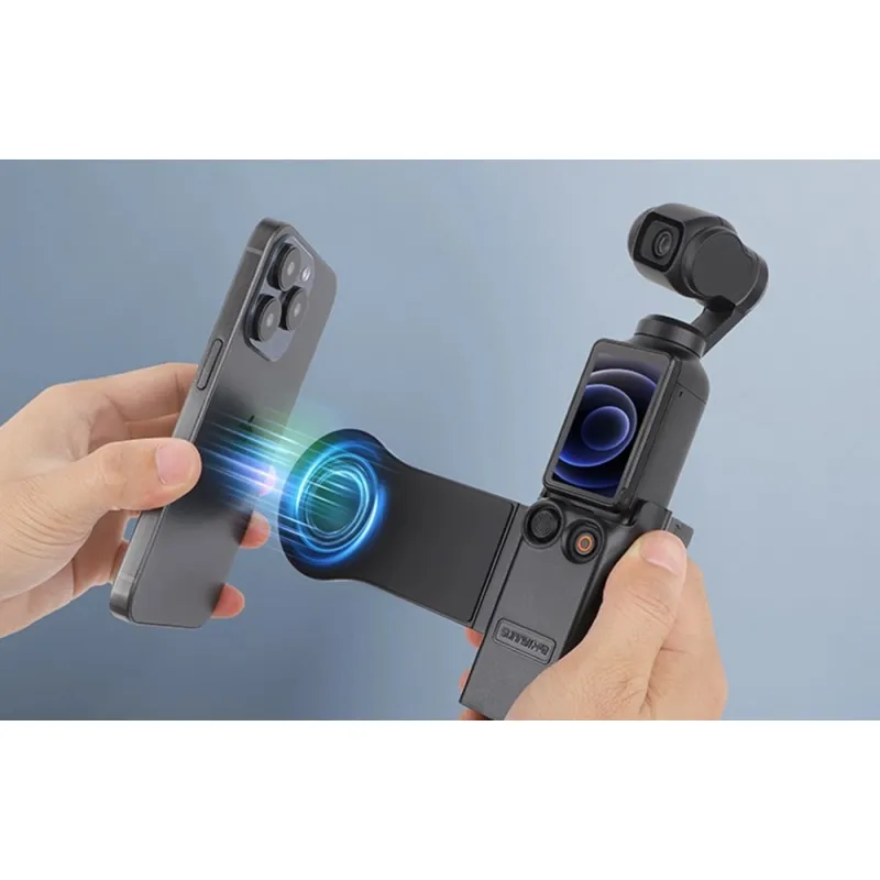 Galingas magnetas užtikrina saugų ir vibracijoms atsparų telefono montavimą. Laikiklis palaiko tiek horizontalią, tiek vertikalią orientaciją, todėl lengva pasiekti tobulą kadrą įrašymo metu. Ultra plonas (0.44 mm) magnetinis žiedas yra įtrauktas, suderinamas su dauguma išmaniųjų telefonų. iPhone 12 ir naujesni modeliai su MagSafe palaikymu nereikalauja žiedo naudojimo.