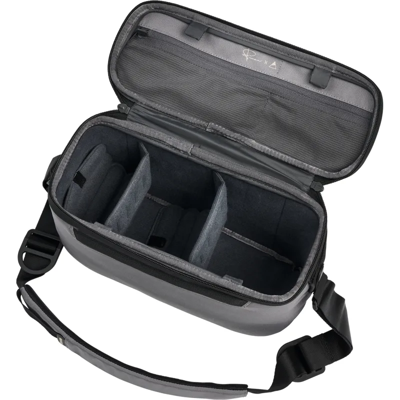 Luma Camera Sling 12L is a photographer's compact powerhouse. Despite its sleek silhouette, the Luma Camera Sling 12L is deceptively spacious, accommodating an impressive amount of gear. If you want to forgo the capacity of a backpack, this sling bag proves itself with its roomy interior. Inside, there are adjustable, shelf-like dividers that allow for flexible organization of equipment, adapting to your specific needs.