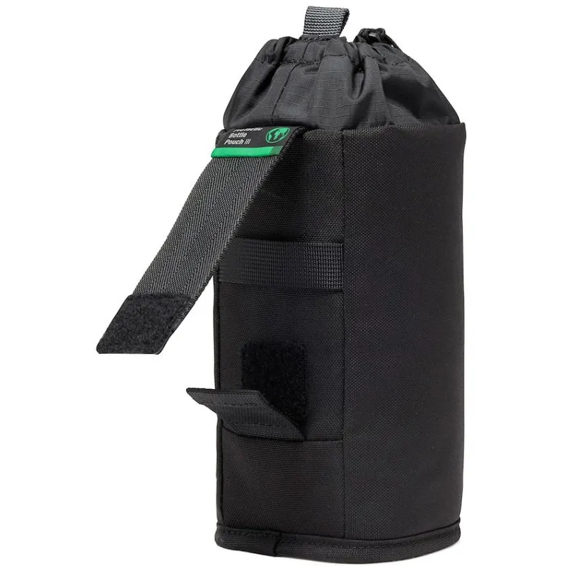 Introducing the ProTactic Bottle Pouch III, an insulated pouch that holds up to a 1L bottle and opens and closes with a pull. Besides water bottles, it can also serve as a quick-change pocket for swapping lenses. The pouch attaches to any SlipLock™ compatible bags or belts, including ProTactic III backpacks, TLZs, and Utility Belt. The extra horizontal webbing on the back provides stability when attached to a regular pants belt.