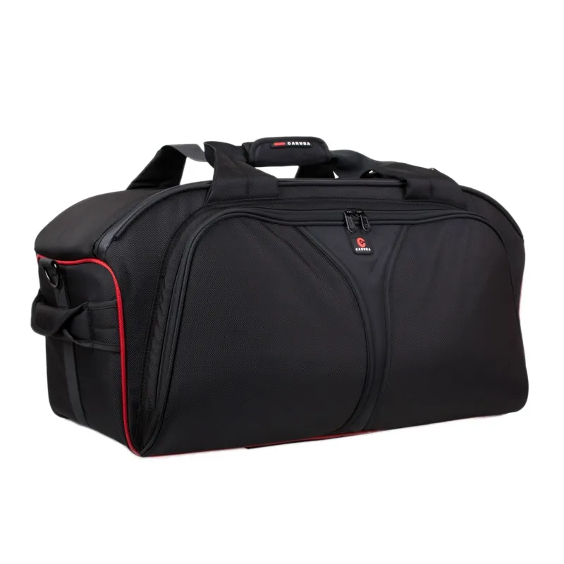 The Caruba Velvex 1 is a sturdy bag with enough storage space and a detachable shoulder strap. In addition to the double handle on top, two sturdy handles are attached to the side of the bags. The front pocket can be opened with the zip and it is divided in a big compartment with three small pockets and two mesh pockets for accessories.