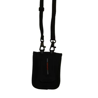 - Adjustable, removable shoulder strap with full-rotation metal clips