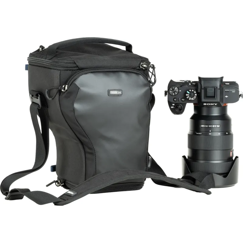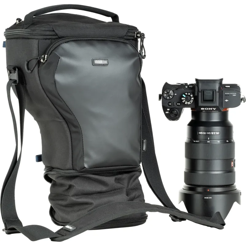 - Form-fitting design for standard or gripped camera bodies with zoom lenses