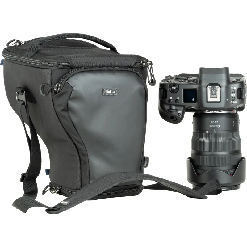 - Form-fitting design for standard or gripped camera bodies with zoom lenses