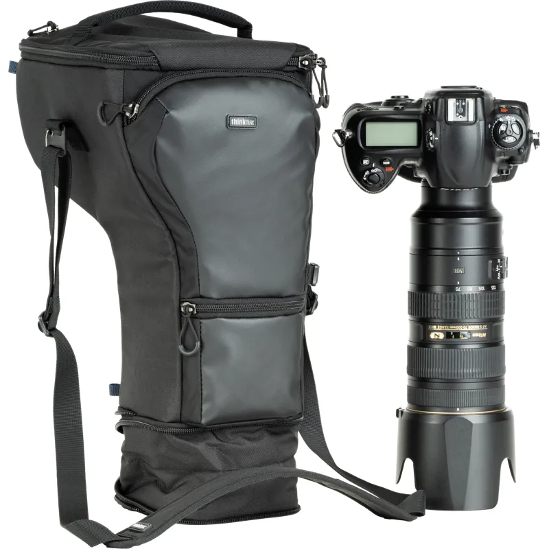 - Form-fitting design for standard or gripped camera bodies with zoom lenses.