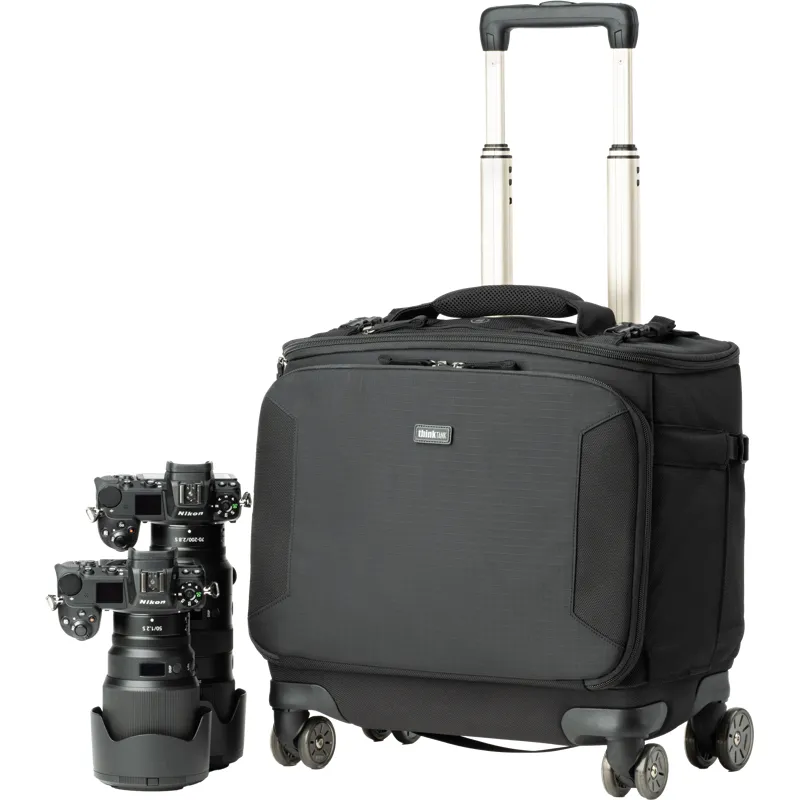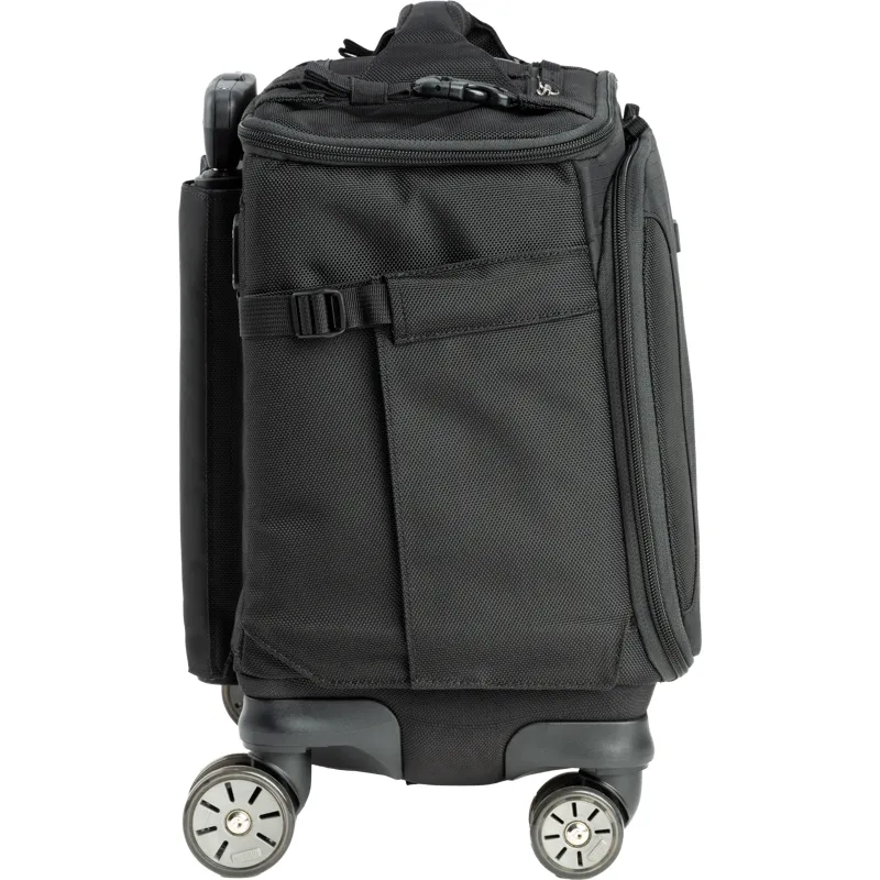 This dual-access, 8-wheel roller bag features top and front openings for quick access to your gear. It includes two compartments with a grab handle, accommodating a mounted 70-200 mm f/2.8 lens. Its compact size and ample capacity make it ideal for traveling event or wedding photographers.