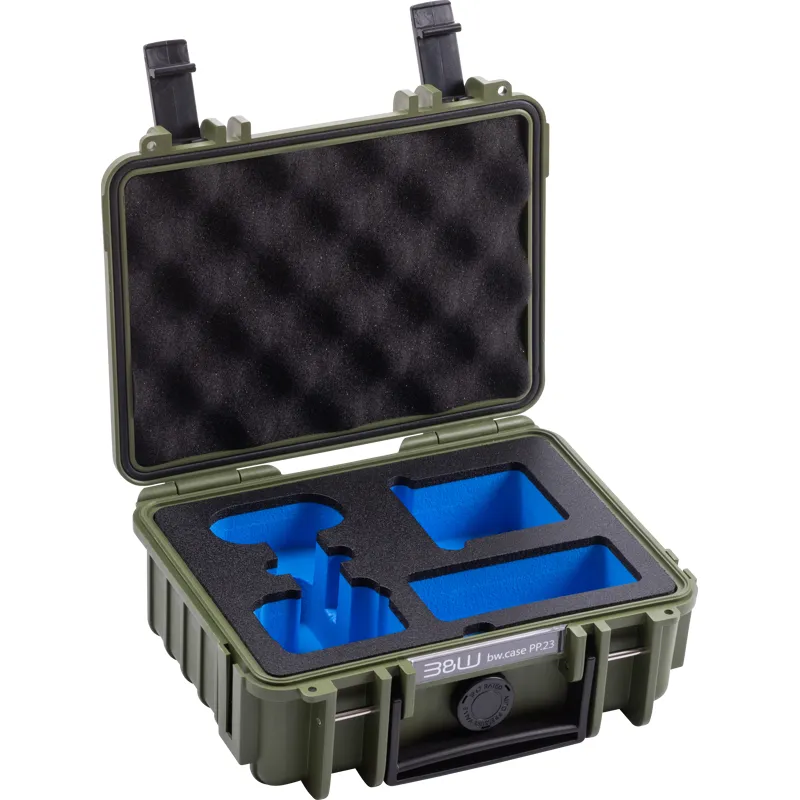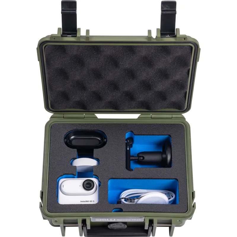 The outdoor.case 500, featuring a foam insert, accommodates your Insta360 GO3 or GO3S camera along with additional accessories, providing optimal protection during transport.