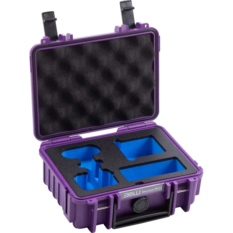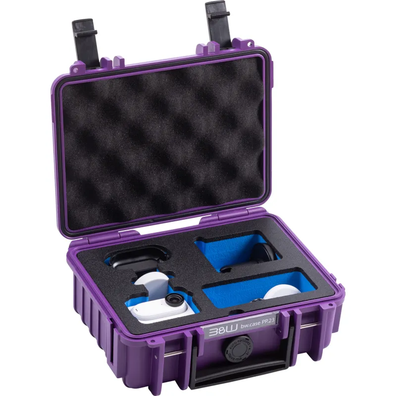 The outdoor.case 500, with a foam insert, accommodates the Insta360 GO3 or GO3S and additional accessories, providing optimal protection during transport.