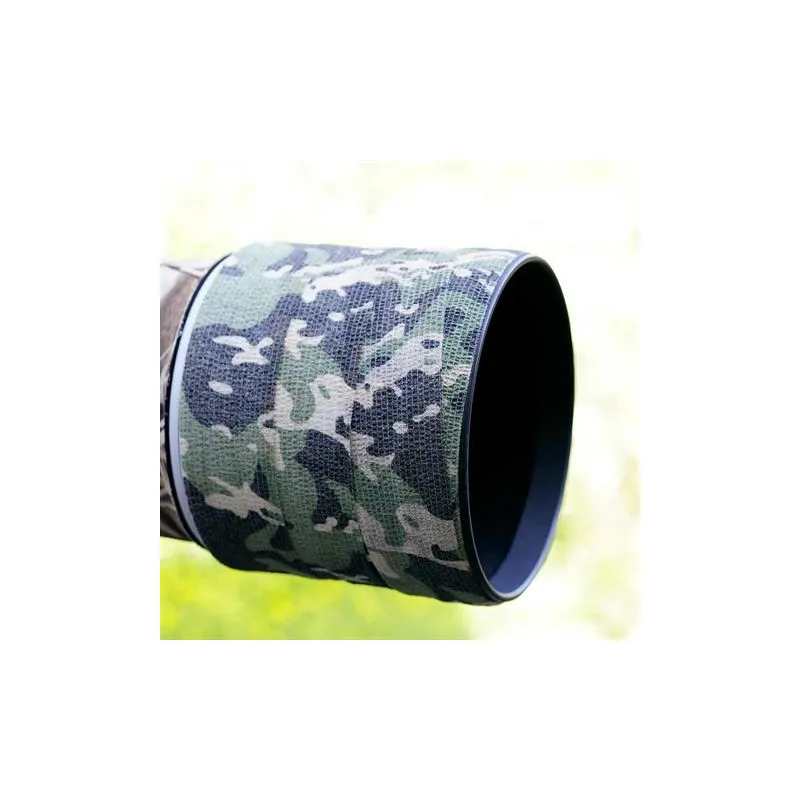 The Camouflage Wrap tape is very handy if you are looking for extra protection, insulation, and/or camouflage. The tape is a kind of bandage tape, but in the "woodland" camouflage pattern. It is an ideal wrapping tape that does not stick, but sticks to itself. This makes the tape easy to apply and remove without leaving adhesive residues. The tape can be used for tripod legs, gimbal heads, hoods, telescopes, binoculars, etc., to protect them, camouflage, isolate, and improve grip.