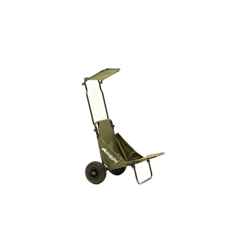 The Stealth Gear Trolley can also be used as a chair, and can support a weight of approximately 110 kilograms. The included sunroof protects you and your gear from the sun.