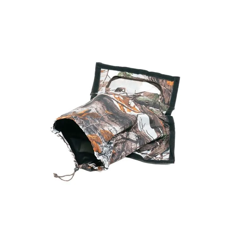 The snoot is made of the same strong material as our hides. All snoots are available in the same homemade camouflage leaves pattern which fits with the patterns/colors of our hides, and are black coated on the inside.