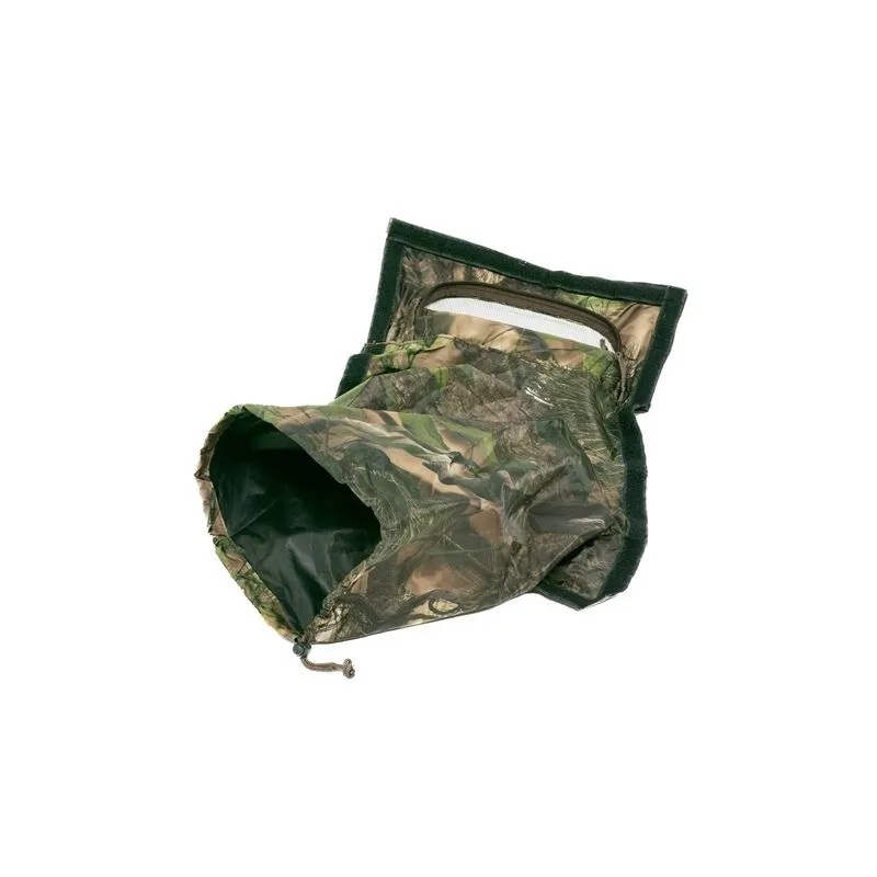 The snoot is made of the same strong material as our hides. All snoots are available in the same homemade camouflage leaves pattern which fits with the patterns/colors of our hides, and are black coated on the inside.