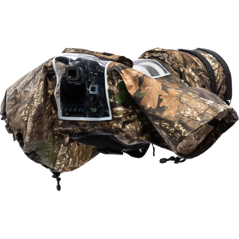 Daugelis laukinės gamtos fotografų klientų prašė kamufliažo versijos, kad galėtų likti nepastebėti, tuo pačiu apsaugodami savo kamerą nuo oro sąlygų, todėl džiaugiamės galėdami pasiūlyti kamufliažo versiją, pagamintą iš RealTree APX audinio. RealTree yra labai populiarus medžioklės pasaulyje ir siūlo realistiškiausią ir efektyviausią kamufliažą rinkoje.