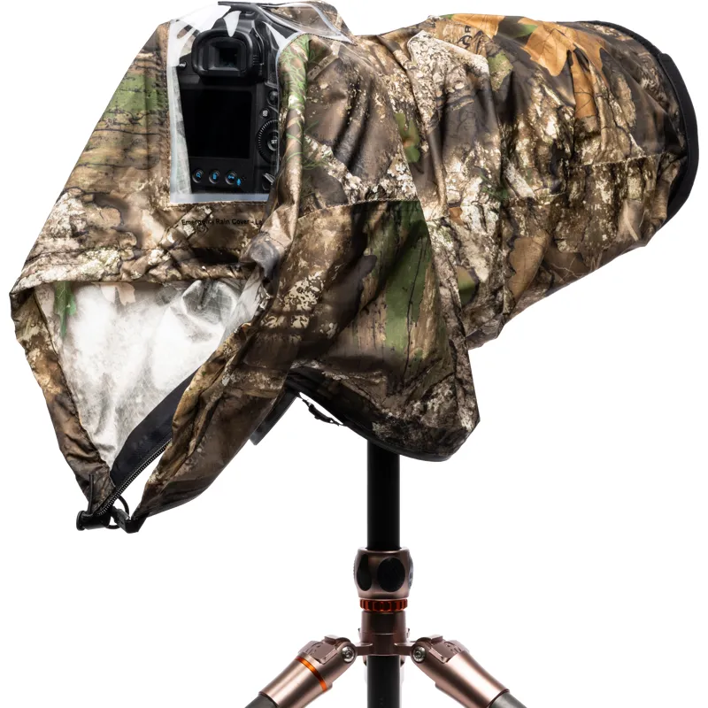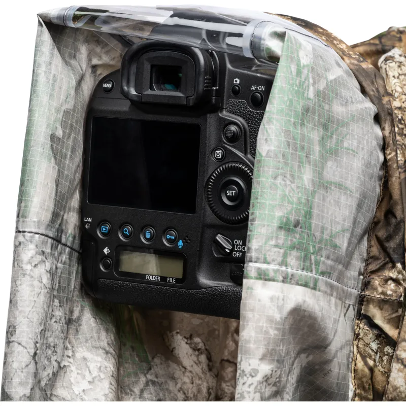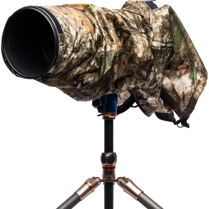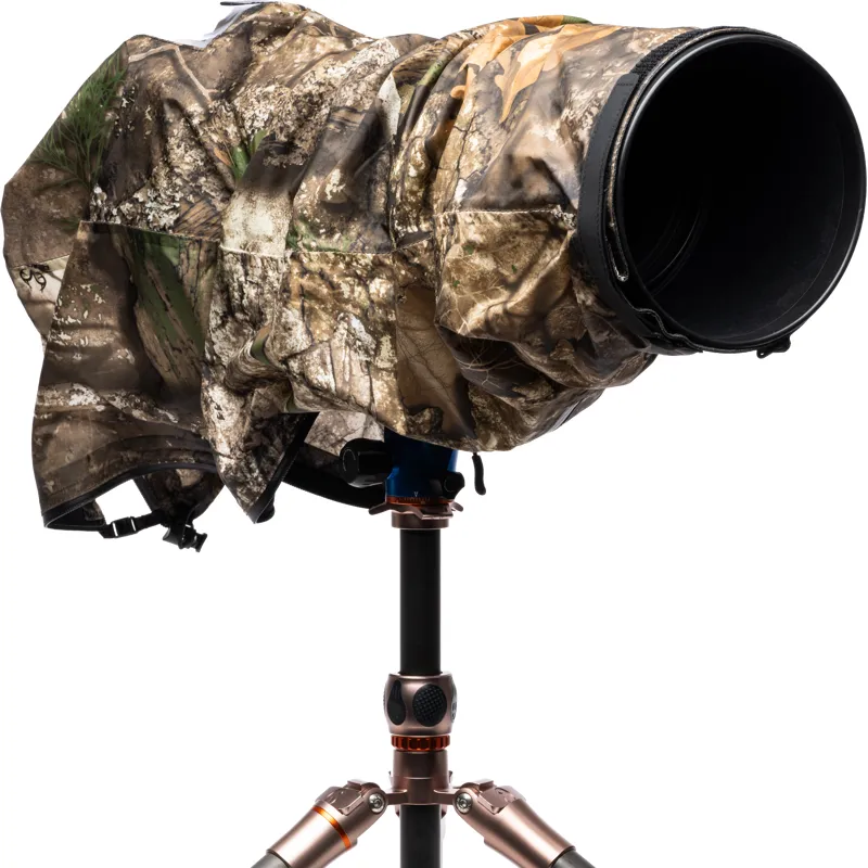 Daugelis laukinės gamtos fotografų prašė kamufliažo versijos, kad būtų diskretiški ir apsaugotų savo kamerą nuo oro sąlygų. Džiaugiamės galėdami pasiūlyti kamufliažo versiją, pagamintą iš RealTree APX audinio, kuris yra labai populiarus medžioklės pasaulyje dėl savo realistiško ir efektyvaus kamufliažo.