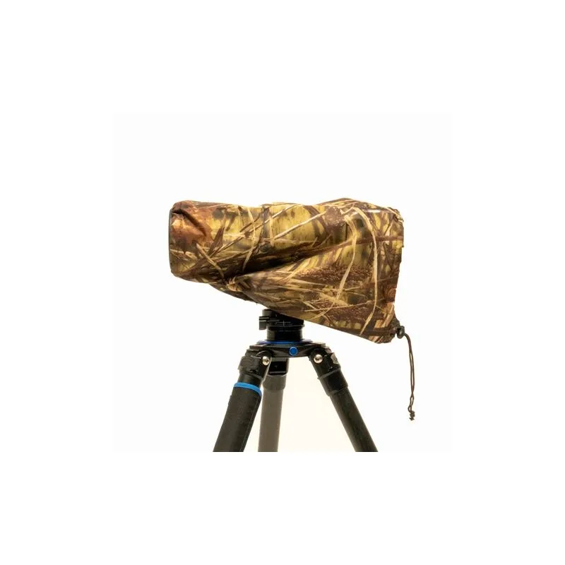 The Rain cover 1 Reed for lens (70-200 / 300mm) is a superb protection for your expensive equipment against rain, snow, dust etcetera. The camo pattern used is our reed/forest camouflage pattern, inside its black coated.