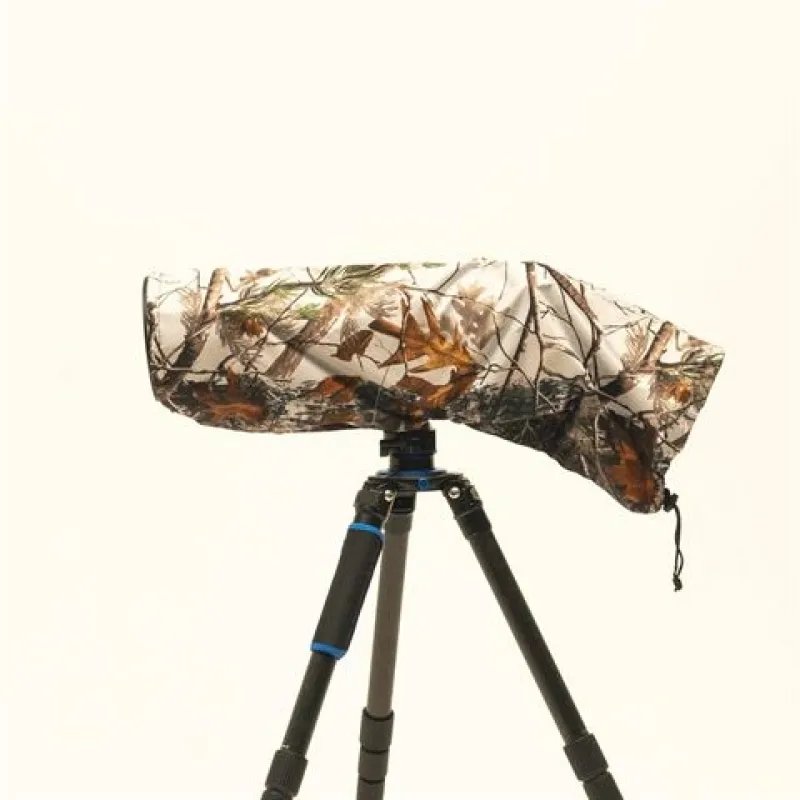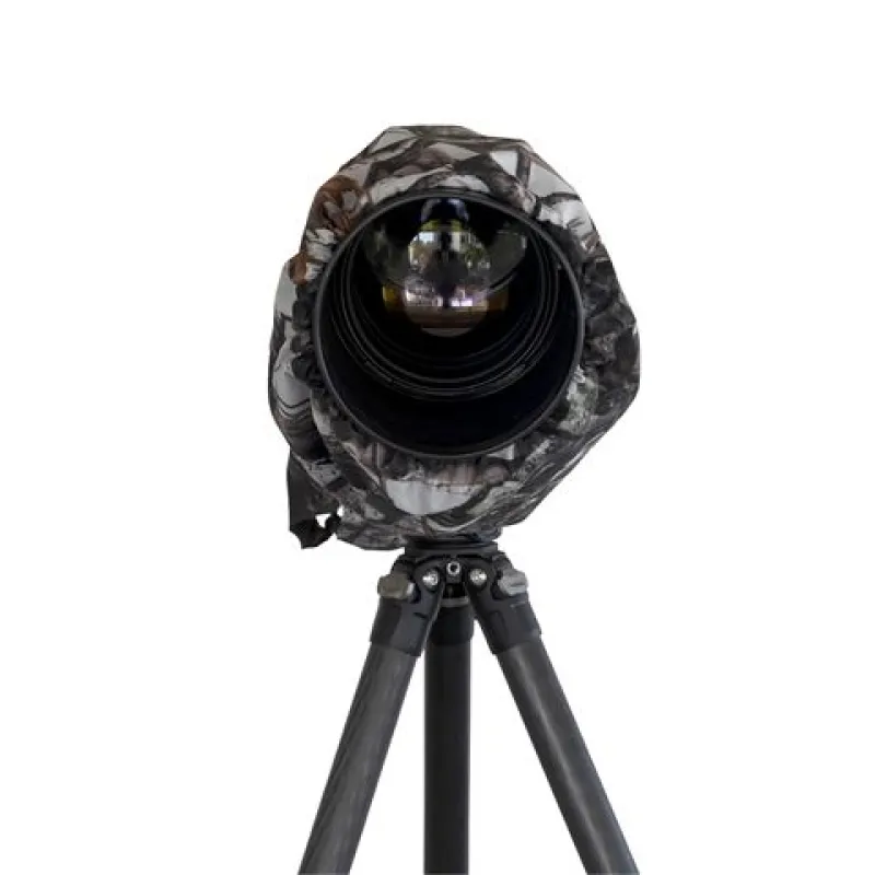 The Rain cover 2 Snow for lens (up to 500mm) is a superb protection for your expensive equipment against rain, snow, dust etcetera. The camo pattern used is our homemade camouflage snow/forest pattern, inside its black coated.