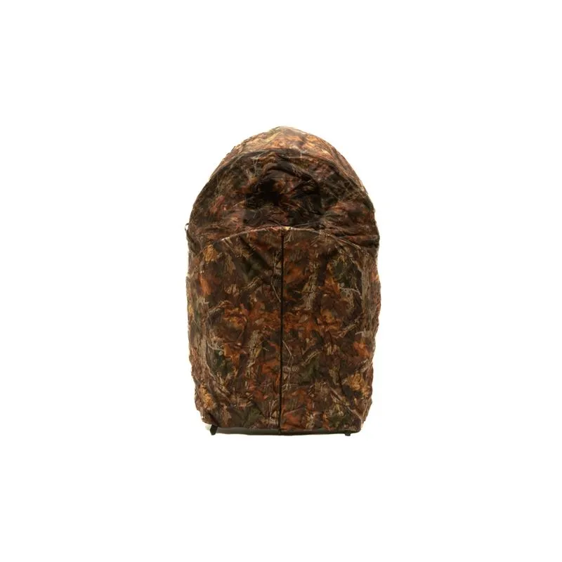 The tent fabric is well camouflaged at the outside, and black coated on the inside to make sure its as dark as possible inside. Youll have enough space for yourself and of course your gear. Place your bag beneith you on the floor.