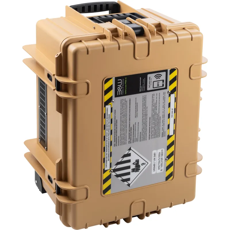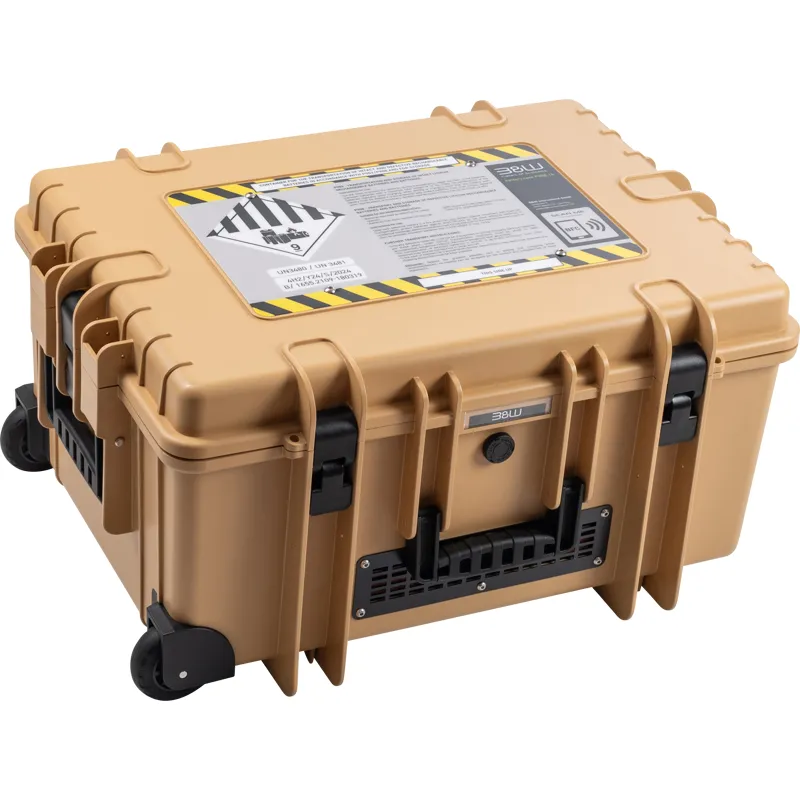The BU&W battery.case P908.16 is designed for safe storage and transport of lithium batteries, with a maximum payload of 16kg. It is robust, user-friendly, and approved for hazardous goods transport.