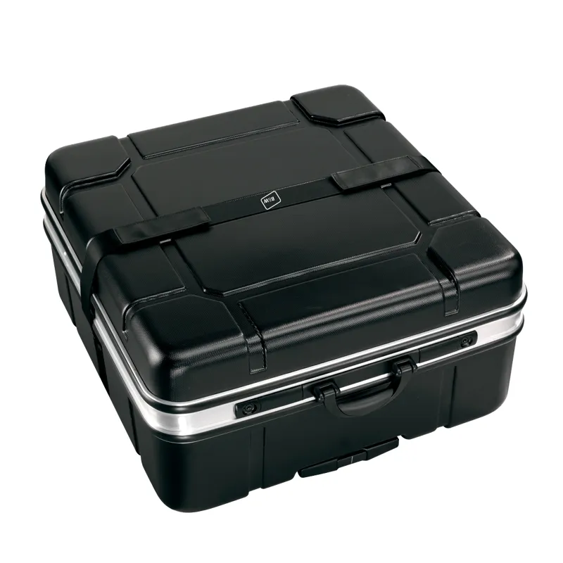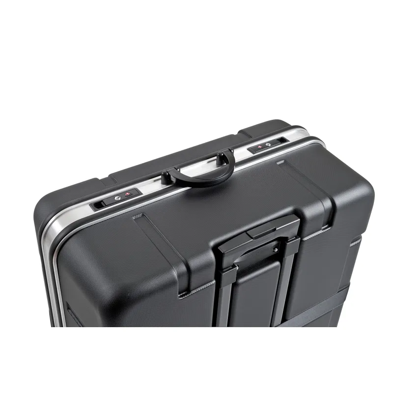 The B&W foldon case: secure, sturdy, strongWith the B&W foldon case, folding bikes stay in place during transport, safe and shakeproofeven or especially during less-than-delicate luggage handling. The rugged ABS plastic shell is impact-resistant and scratchproof, and the aluminum rim offers reinforced corners. A case strap routed inside the shell provides optimal support for the fail-safe closing mechanism of the locking latches so the contents remain protected against any external influences at all times. Its ideal size makes our B&W foldon case the perfect compact companion for secure transport of valuable contents, from Brompton bikes to a complete travel setup.