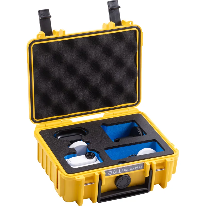 The outdoor.case 500, featuring a foam insert, accommodates your Insta360 GO3 or GO3S camera along with additional accessories, providing optimal protection during transport.
