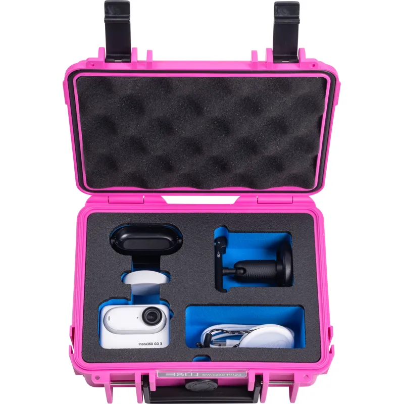 The outdoor.case 500, with a foam insert, accommodates your Insta360 GO3 or GO3S camera and accessories, providing optimal protection during transport.