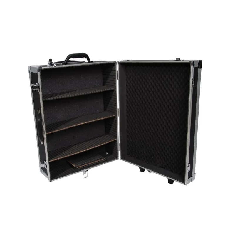 This professional aluminium Falcon Eyes case is an aid for carrying your studio equipment easy and safely. This case is designed for studio flash units and accessories such as stands and umbrellas. The lay-out of this case can be varied as desired with the 3 cm thick partitions. On the outside of the case there are six loops which offer room for for instance extra stands. The case can be moved by dragging it along or by carrying it using the reliable handle. The lid of the case is 5 cm thick and with its two locks it offers extra safety for your equipment. The maximum carrying weight is 25 kg.