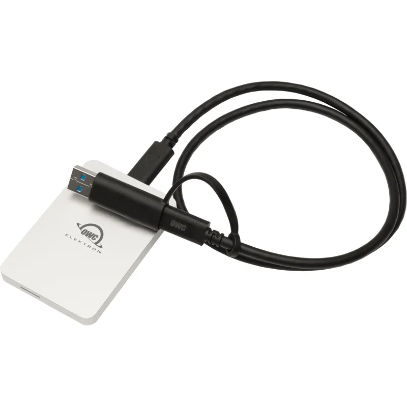 1.0TB OWC Envoy Pro Elektron USB-C Portable NVMe SSD. The fastest, toughest mini-sized USB-C bus-powered SSD in the universe. It's dust/waterproof for transferring gigabytes of data in seconds anywhere with Macs and PCs.