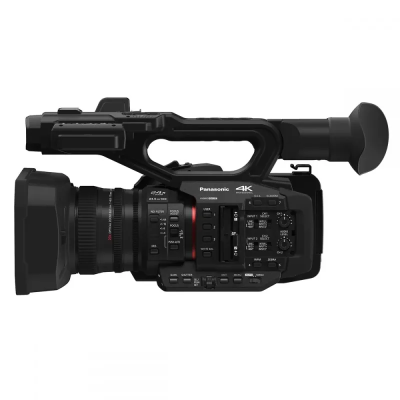 The Panasonic HC-X2 4K professional camcorder is a compact 4K 50p/60p camcorder that offers high mobility and a feature set that meets the various requirements for e.g. reportage, documentaries,weddings or events. It has a large 1-inch sensor and a powerful 20x zoom lens with a focal length of 24.5mm wide angle to 490mm telephoto (KB). Videos it records include 4K at up to 60 frames or FHD at up to 120 frames. It supports 4:2:2 10-bit 4K 30p/25p video recording with the new, effective HEVC codec. Super slow motion (120/ 100 fps) and variable frame rates (2 to 60 fps) offer a wide range of creative possibilities. And especially in difficult shooting situations, the hybrid image stabilizer simplifies the work a lot. The optical 5-axis image stabilizer (OIS) detects and corrects the