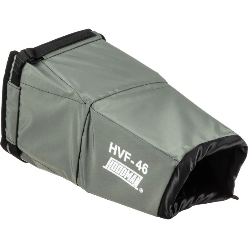 The Hoodman HVF46 is a universal hood designed for 4 to 10 flat panel monitors. This lens hood blocks direct sunlight or studio light on the monitor screen so that you can better assess the image quality on color and sharpness. The hood is attached to the monitor with a strap and has a soft lining at the end for comfortable viewing. When not in use, the hood can be folded flat. The sun canopy is constructed from plastic inserts covered with water resistant nylon.,