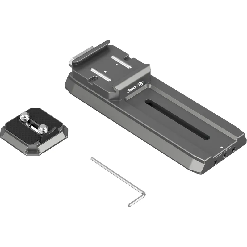 Specially designed for DJI RS 2/RSC 2 / RS3 / RS 3 Pro / RS 4 / RS 4 Pro stabilisers, the SmallRig 4638 HawkLock H38 Manfrotto Quick Release Plate for DJI Stabilisers allows for quick transitions between tripod and stabiliser setups, optimising the users shooting time. The quick release plate meets Manfrotto standards, with a tool free quick release design. Internally, the Arca Swiss quick release base plate has an adjustable non slip design. It facilitates quick installation of cages (ID 4481) and includes a gear rail at the bottom for precise front to back sliding adjustments.