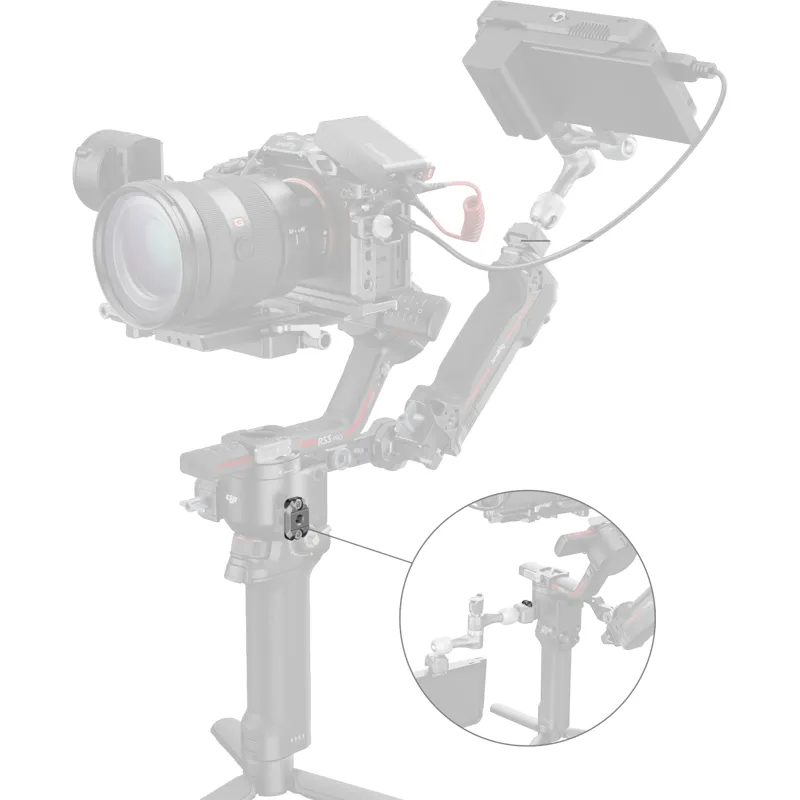 It can be attached to the left and right side of the stabiliser with two M4 screws and is compatible with SmallRig quick release accessories with NATO rails, such as magic arms (ID 4490) and monitor holders (ID 4637). In addition, it is compatible with original DJI RS2 accessories such as the dual handle. The mini NATO rail has a 1/4 20 threaded hole for attaching accessories such as magic arms (ID 2070, 2163), monitors, action cameras and more.,