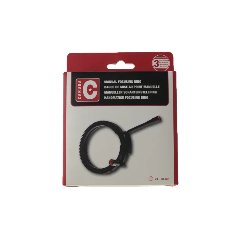 Caruba Manual Focusing Ring 74-78mm The Caruba Manual Focusing Ring 74-78mm is an extremely useful tool for manual focusing with a lens with a diameter of 74 to 78 millimeters. There are situations where manual focusing is preferred to automatic focusing, such as macro photography, shooting in poor lighting conditions or filming with an SLR camera.