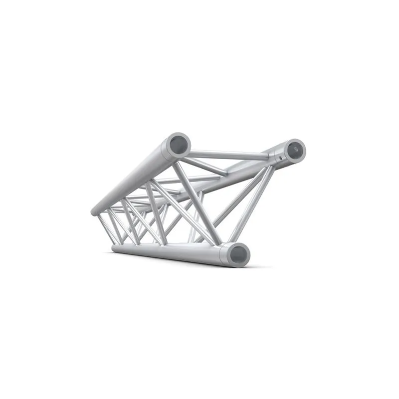 The triangle truss has a 32 mm diameter main tube and a 10 mm diameter brace tube. Despite its light weight of only 5,75kg, this truss component is durable and reliable, making it suitable for both small and medium-sized events. The silver color matches well with different event styles, making it easy to combine with other truss components.