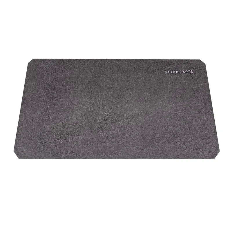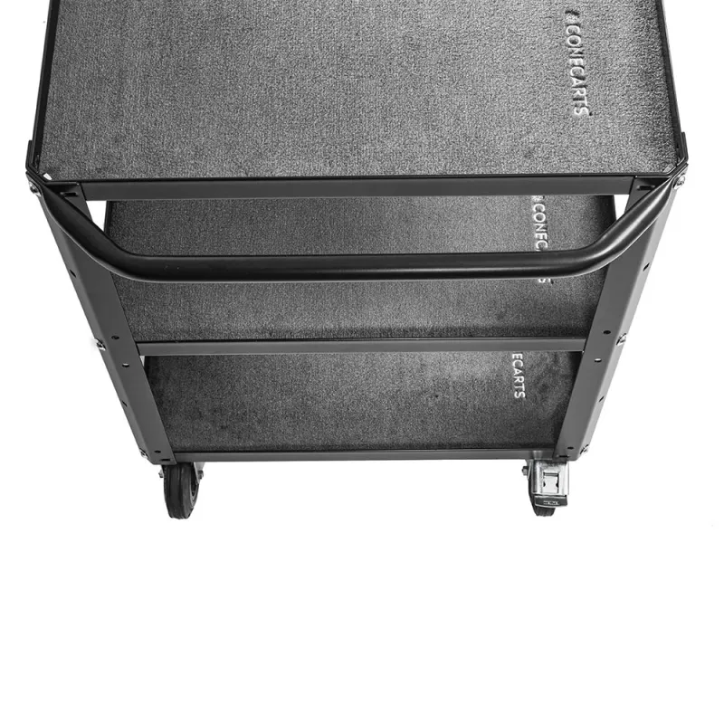 Each shelf has a grey fabric mat with the ConeCarts® logo embroidered on it which guarantees greater protection of the cart and tools.