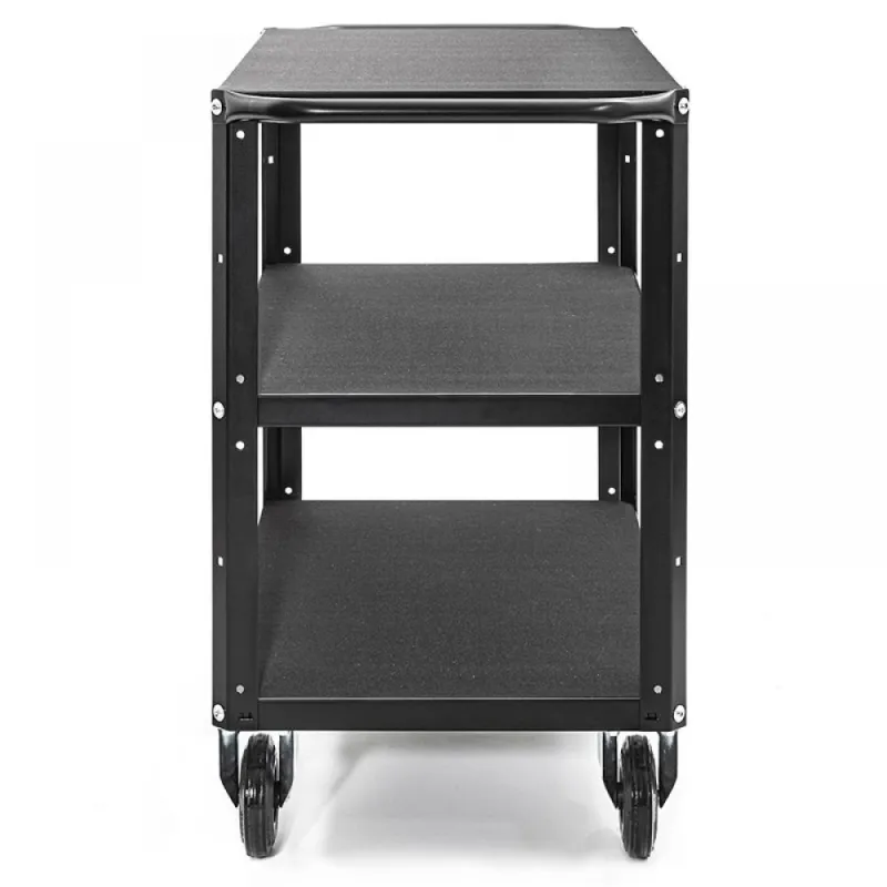 Three-shelf cart completely in black steel (RAL 9005). Small version.