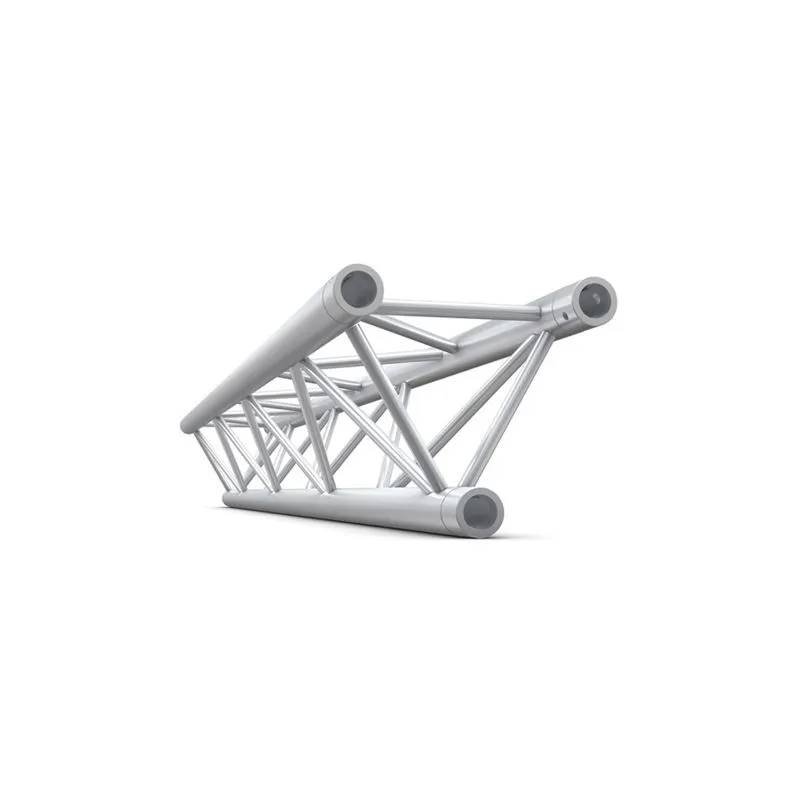 The triangle truss has a 32 mm diameter main tube and a 10 mm diameter brace tube. Despite its light weight of only 3,45kg, this truss component is durable and reliable, making it suitable for both small and medium-sized events. The silver color matches well with different event styles, making it easy to combine with other truss components.