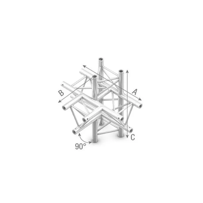 Want to combine multiple truss items together? The StudioKing Truss T-Cross 5 Way is a versatile and sturdy truss component perfect for professional events and installations. With a length of 578mm (A), a width of 400mm (B) and a height of 603.5mm (C), this T-cross provides a solid foundation for creating strong and stable truss structures.