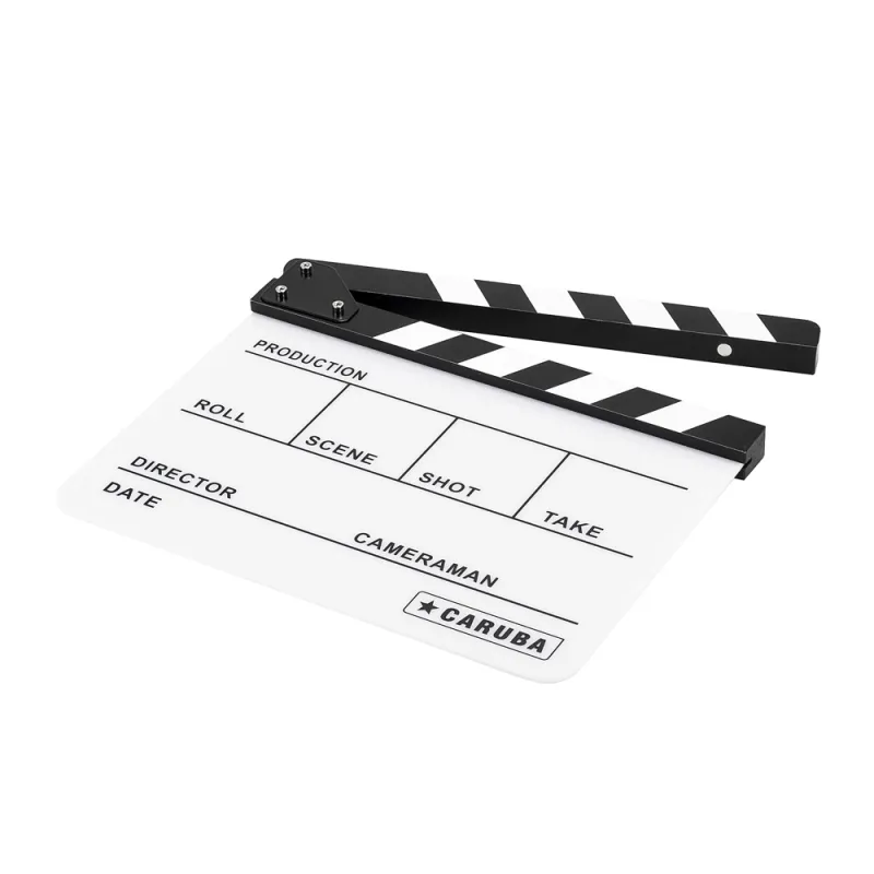 This plastic Caruba Professional Director Clapper (whiteboard marker) is a very useful tool for filmmakers and videographers. With this clapperboard, synchronizing image and sound is a piece of cake. In addition, you can use the clapperboard to mark certain scenes and takes. The sharp "clap" sound produced by the clapper board is easy to identify in the audio track, and the closing of the clapstick can be easily found in the video track. The two tracks can then be precisely synchronized by matching the sound to the movement.