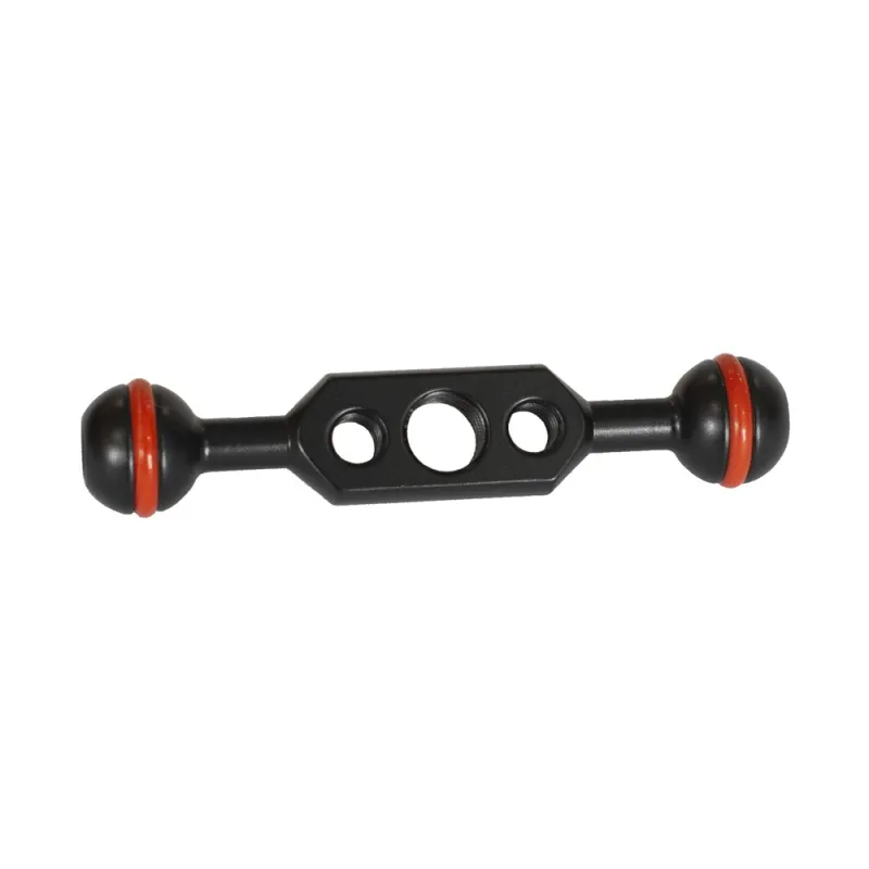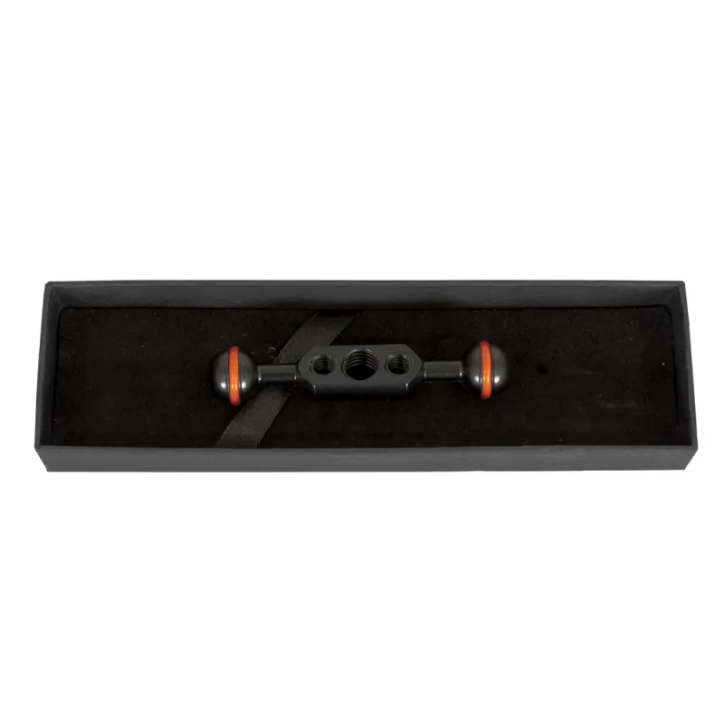 The Caruba Coupler can be used to mount a video light or fill in flash to your Magic Arm Pro for, for example, underwater photography. The angle can be adjusted randomly to get a better angle. The double ball arm with a length of 7.6 cm is made of corrosion proof aluminium and has a rubber O-ring friction gasket. The Caruba Coupler has a 1/4" and 3/8" screw thread for mounting accessories.