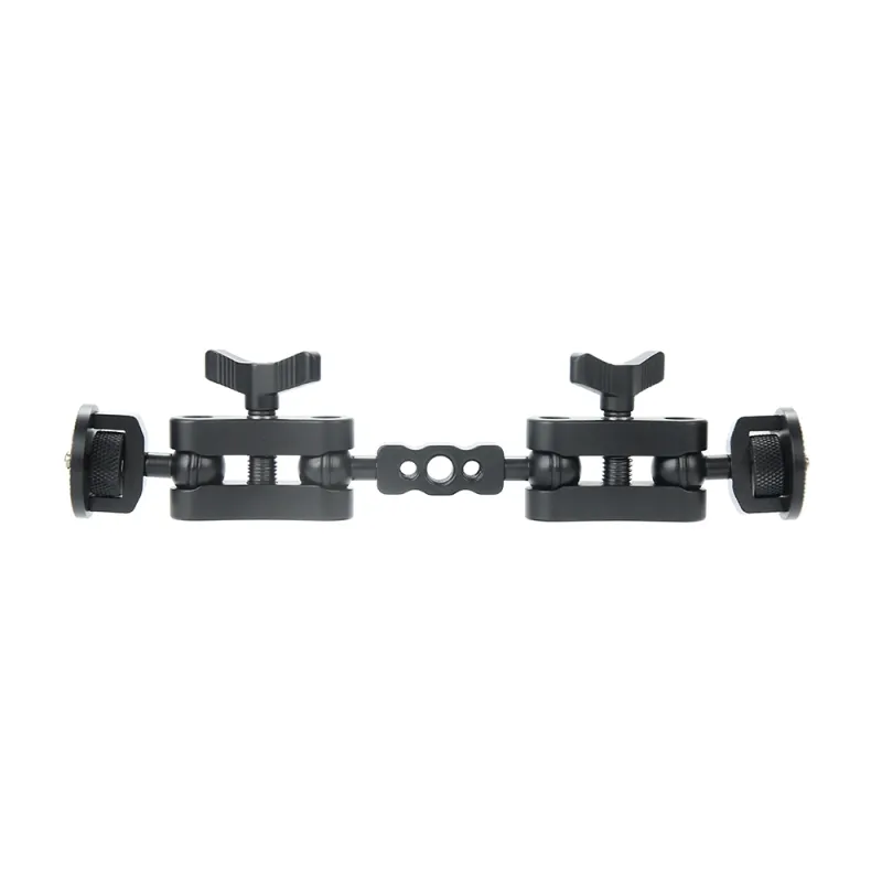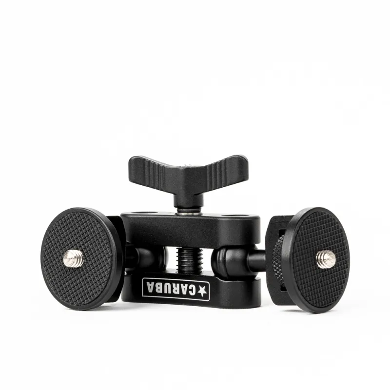 The Caruba Double Magic Arm with Coupler is a hinged arm with double ball heads and a coupler for mounting a flash, light, monitor, audio recorder and more, on the rig, camera cage or tripod.