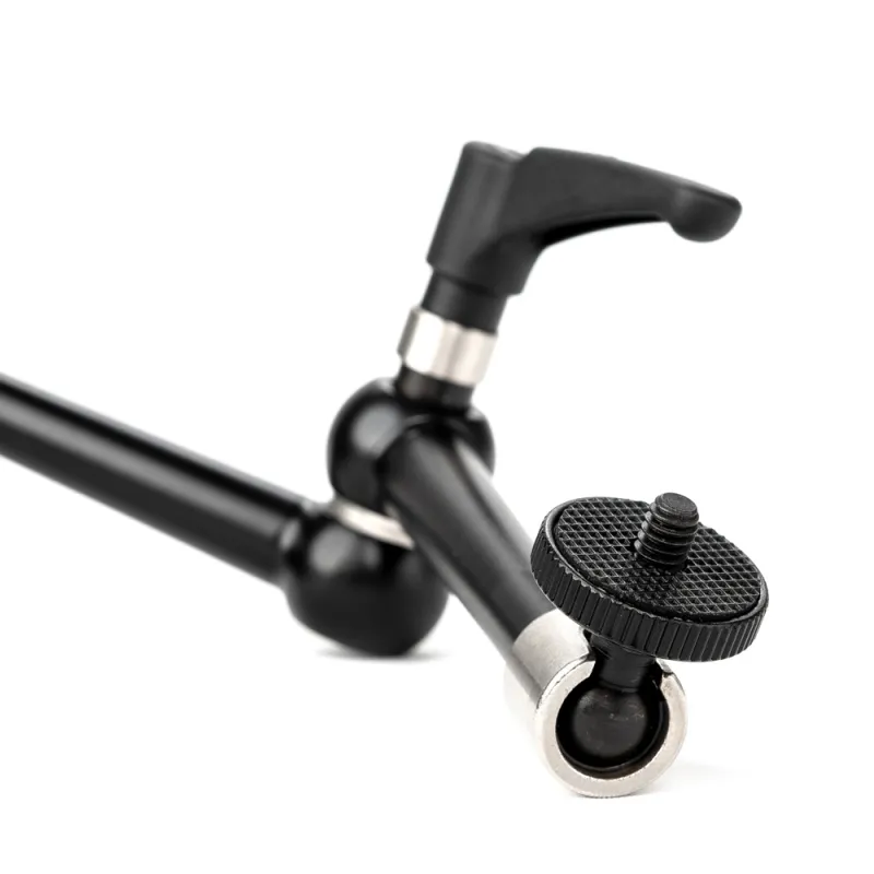 The Caruba 290mm Magic Arm Extra Tough is a professional 11.5 inch magic arm, perfect for mounting LED-lights, displays or flashes. It has a 1/4" screw connection and a square hot shoe connection. The hot shoe connection is detachable, so you get an arm with two 1/4" screw connections.