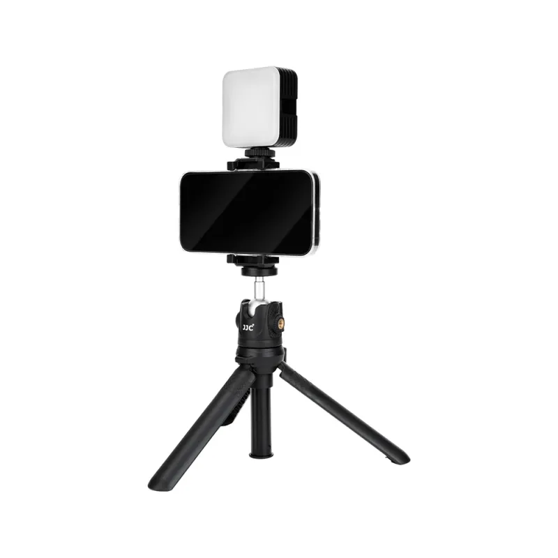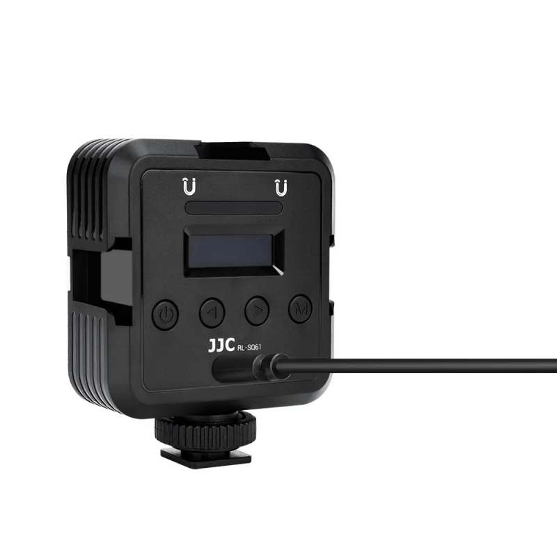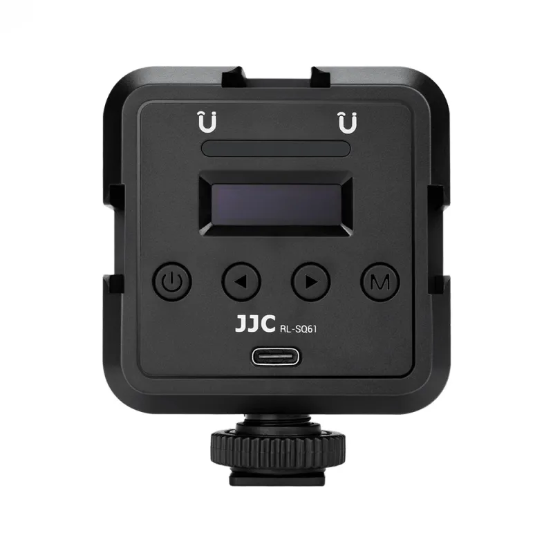 The JJC RL SQ61 RGB LED Light is specially designed for recording vlogs and live streaming. This light is compatible with equipment with a standard shoe mount, such as cameras, phone clips, phone grips, video rigs, etc. You can also attach it directly to a mini tripod or stand with a 1/4 20 screw.