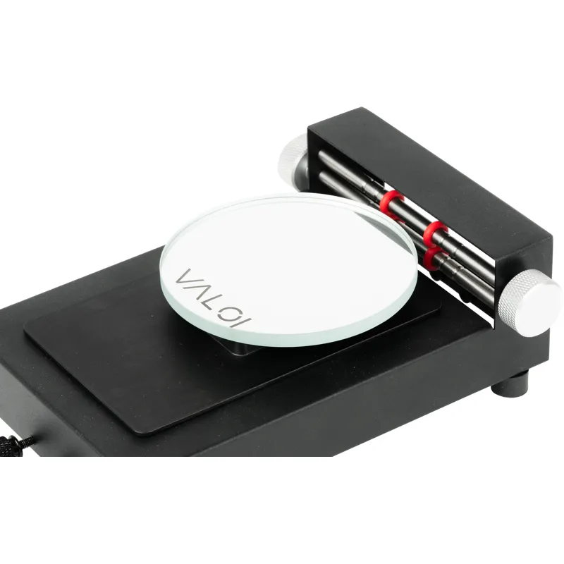 - Place the VALOI leveling mirror on the entire equipment (on the holder).