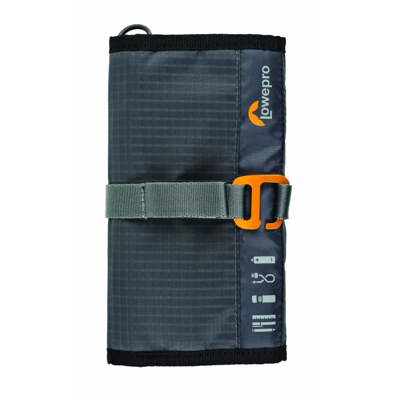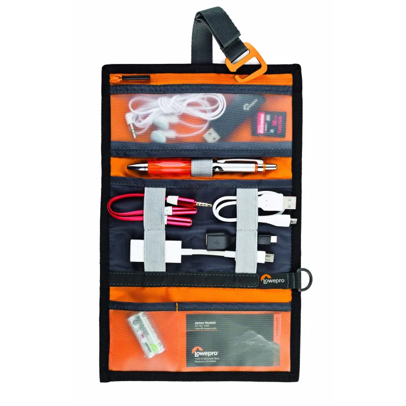Streamlined, portable organizer for your smartphone travel essentials. The GearUp Wrap features pockets and elastic web grid perfect for storing cords, cables, USB chargers and battery.
