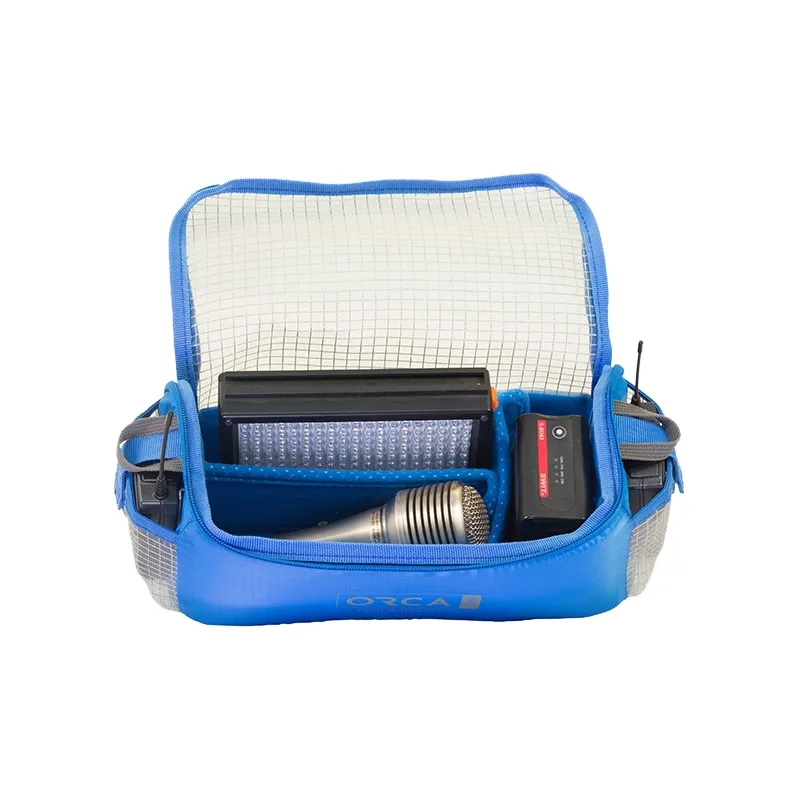 Made to accommodate a dynamic microphone, batteries, on camera LED light, SD cards, wireless audio systems, cables and more.