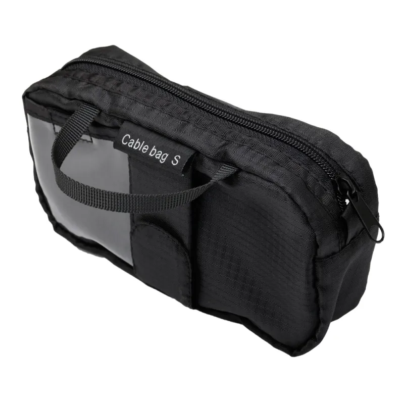 With the Caruba Cable Bag S - double side you won't have problems with cables laying around. The convenient bag has a zip and is provided with two plastic viewing windows, so you can easily see which cables are stored in it. The divider in the middle can be removed, so you can create one big compartment for your cables. A pocket for a business card or a label describing the contents of the bag can be found on the back. Carry the bag with you with the hand straps on the top or attach it to your belt with the belt loop on the back.