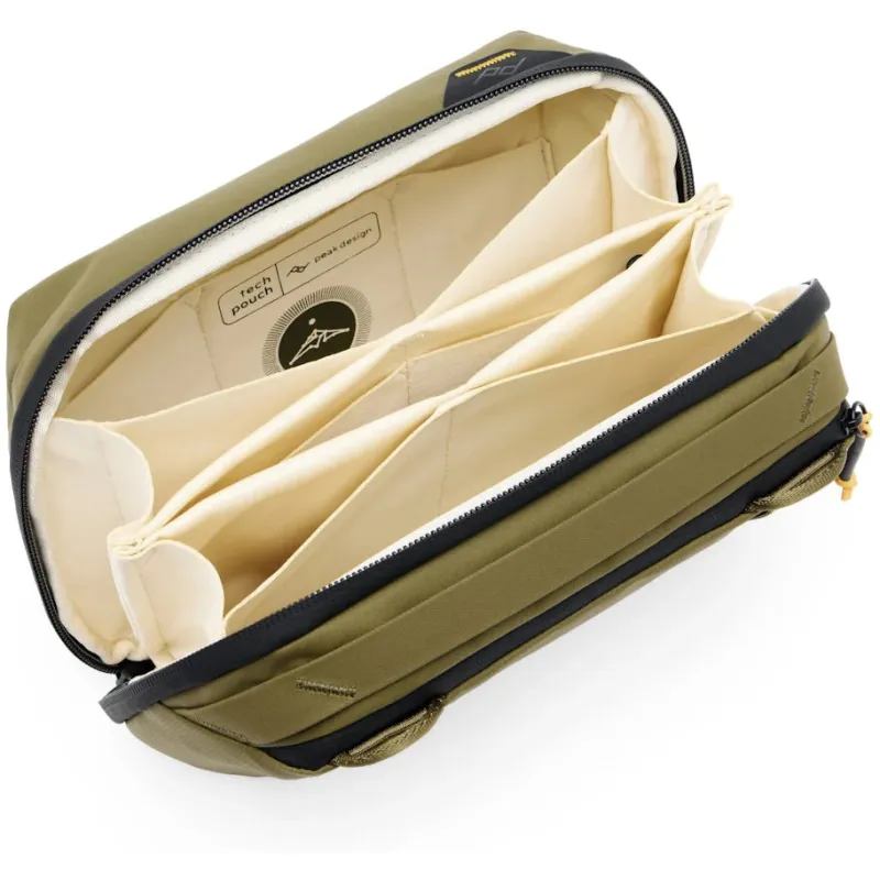 Whether storing cables, everyday gear, or travel essentials, the Tech Pouch offers unrivaled organization and ease of access. Origami-style pockets create enormous spatial efficiency, allowing you to pack more into a smaller space while keeping your items neatly organized and easy to find. Elastic accessory loops keep items like pens, knives, SD cards, and batteries always within reach. Exterior handles and a clamshell-style opening make this pouch a delight to hold and access. An external zip pocket features a cable pass-through for easy device charging. The 400D recycled nylon canvas shell is weatherproof and aesthetically clean.