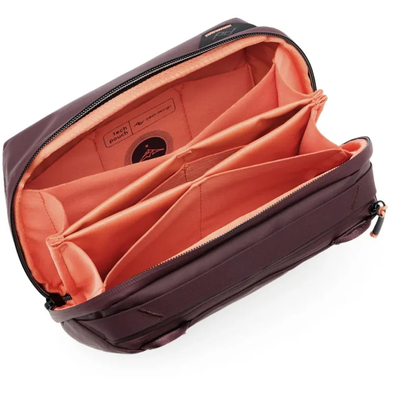 Whether storing cables, everyday gear, or travel essentials, the Tech Pouch offers unrivaled organization and ease of access. Origami-style pockets create enormous spatial efficiency, allowing you to pack more into a smaller space while keeping your items neatly organized and easy to find. Elastic accessory loops keep items like pens, knives, SD cards, and batteries always within reach. Exterior handles and a clamshell-style opening make this pouch a delight to hold and access. An external zip pocket features a cable pass-through for easy device charging. The 400D recycled nylon canvas shell is weatherproof and aesthetically clean.
